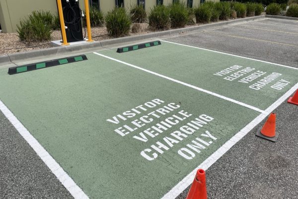 Dedicated EV charging bays, high‑visibility green infills, EV logos and directional arrows. Our team delivers complete EV line marking services for shopping centres, commercial spaces, councils and strata car parks. Using precision‑cut stencils, airless spray equipment and long‑life, low‑VOC coatings, we plan, design and mark every electric‑vehicle bay for maximum visibility and space efficiency while complying with Australian Standards for accessible parking and charging infrastructure.